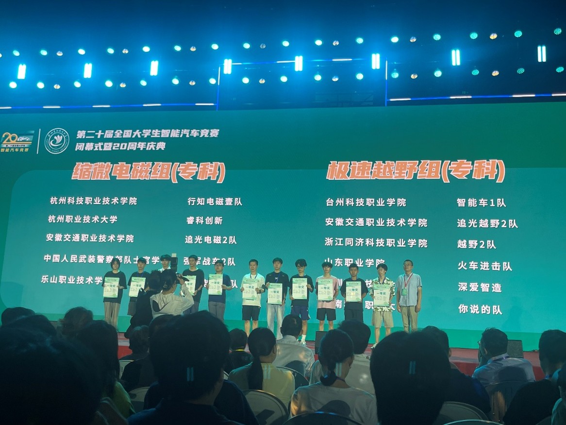 8月18日至20日,第二十届全国大学生智能汽车竞赛全国总决赛在杭州电子科技大学成功举办。总决赛共有来自哈尔滨工业大学、武汉大学、同济大学等在内的297所高校700余支队伍、3000余名师生同台竞技。经过激烈角逐,我校晋级的8支参赛队伍,在缩微电磁、智慧配送、极速越野、智慧医疗等赛项中一举斩获4项全国一等奖(其中3项亚军)、3项全国二等奖,并荣获全国组委会颁发的“组织贡献奖”,刷新历年来高职院校该赛事历史最佳纪录。