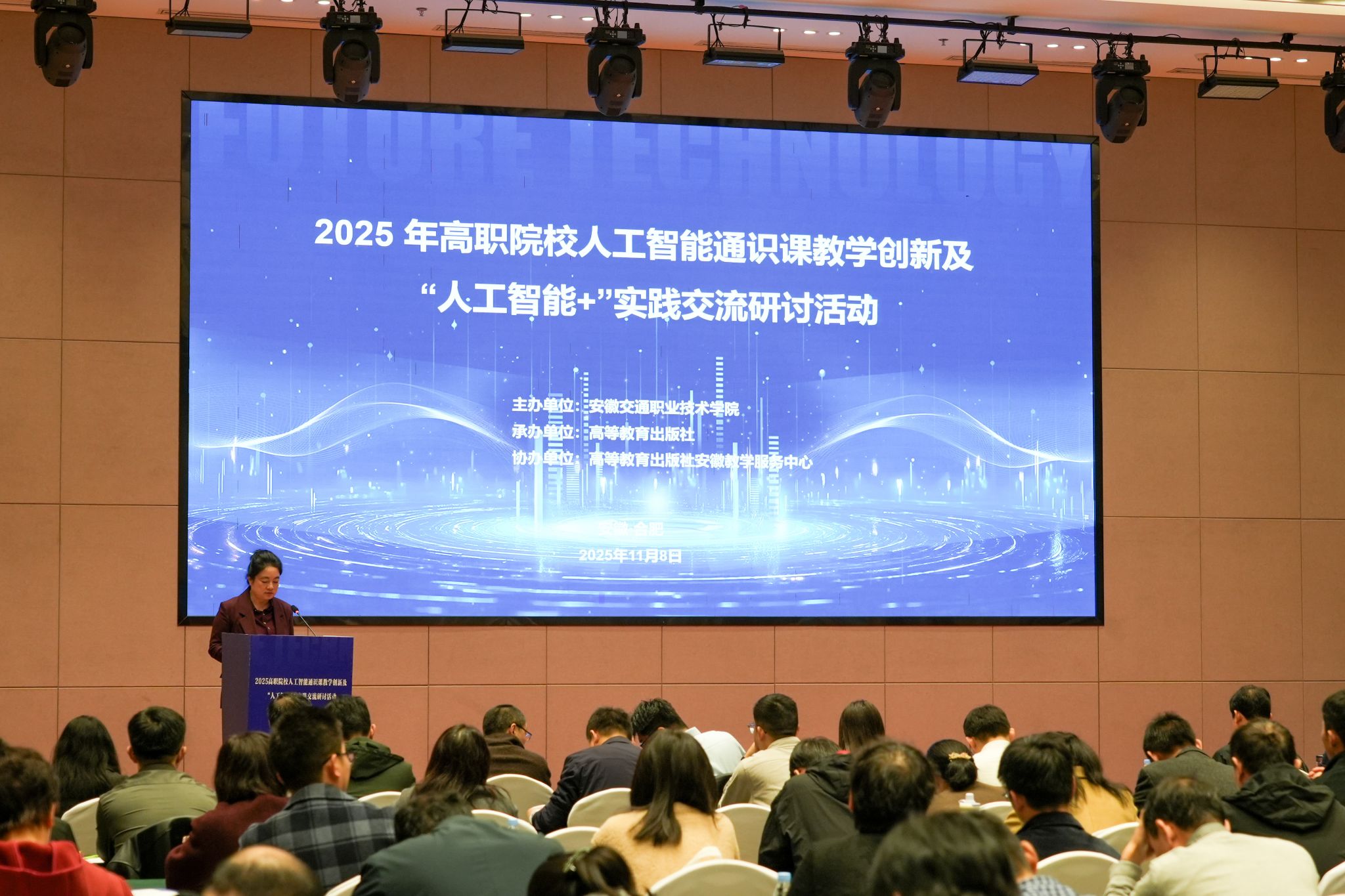 11月8日,由安徽交通职业技术学院主办、高等教育出版社承办的"2025年高职院校人工智能通识课教学创新及'人工智能+'实践交流研讨活动"在合肥成功举行。我校党委副书记、校长孙晓雷出席活动并致辞,校党委委员、副校长梁洪波、人工智能学院副院长张峰参加活动。会议由梁洪波主持。