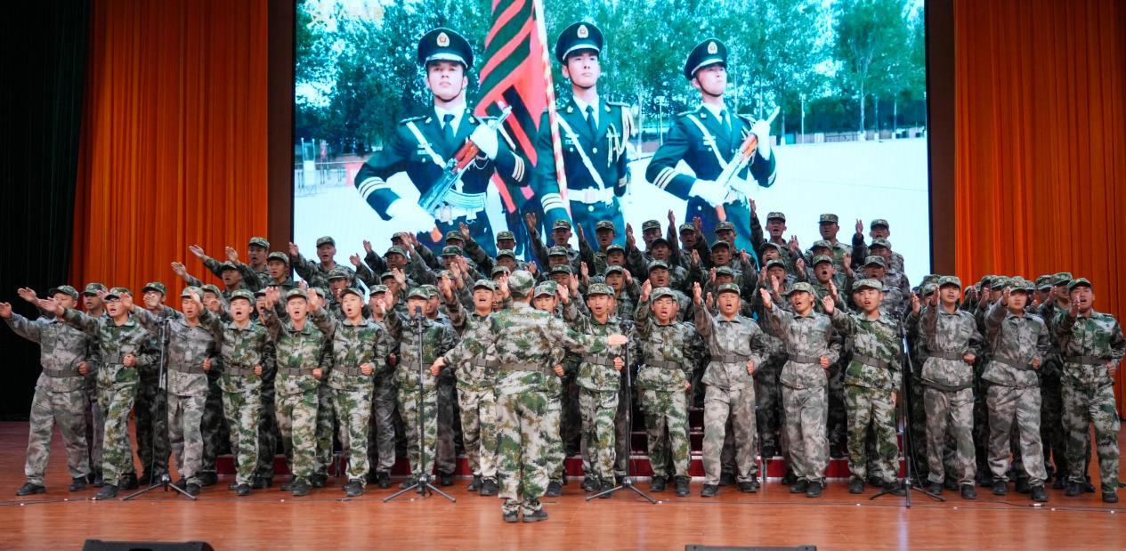 激昂的旋律如暖流涌动,深深感染着台下每一位观众。从恢弘曲调里,大家读懂红歌蕴藏的信仰之美;从赤诚歌声中,众人感受旋律承载的情怀之美,情感共鸣在会场内悄然升温,红色力量在心底静静扎根。军训的汗水与爱国的热忱在此交织,少年意气在激昂旋律中舒展,红色信仰于婉转曲调里扎根。学子们身姿挺拔如松,每一次合唱都彰显着千锤百炼的坚毅魄力,每一段旋律都承载着历史的温度与精神的力量。他们以歌为桥,触碰峥嵘岁月中的赤诚坚守;以声为炬,凝心铸魂传递滚烫爱国热忱。