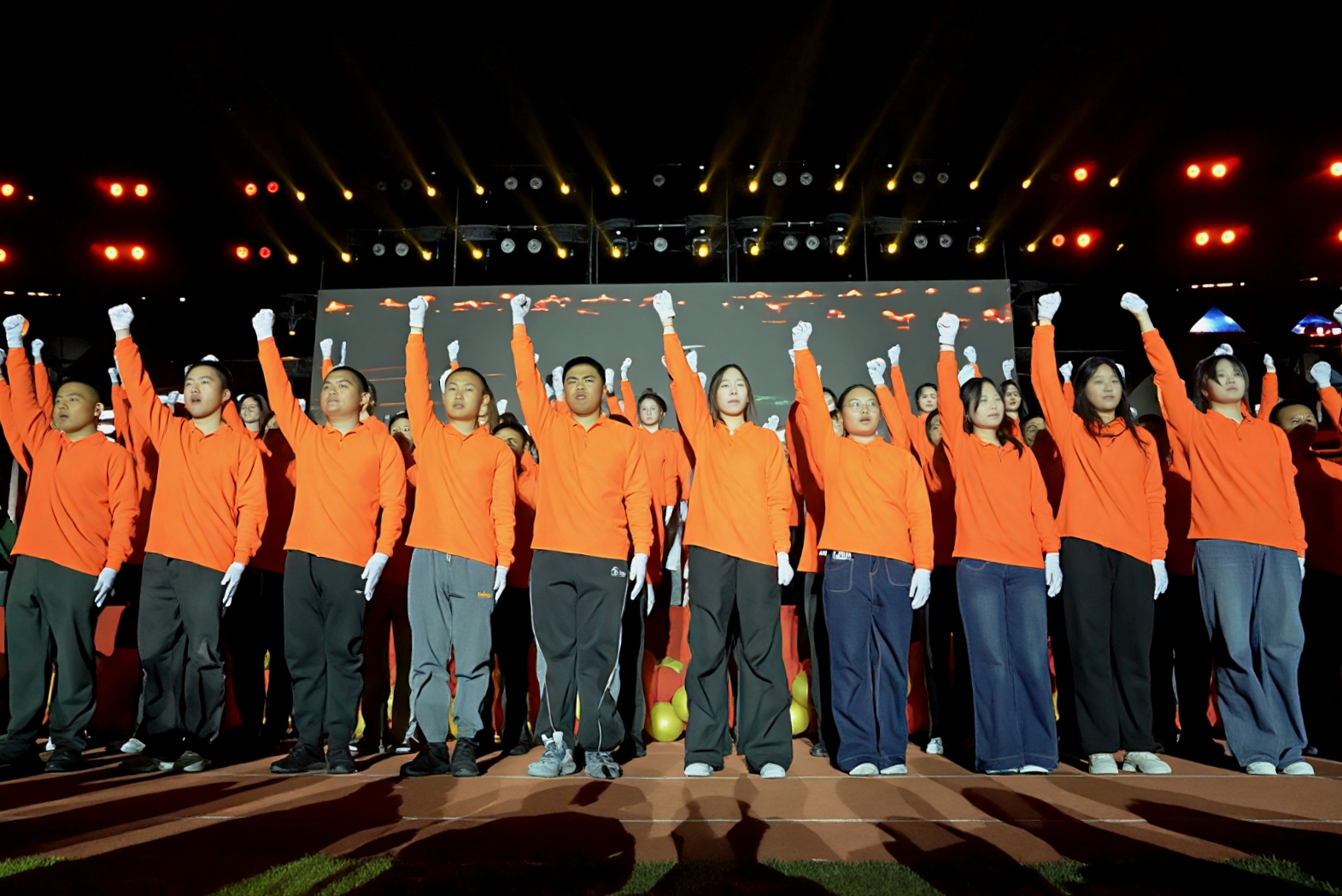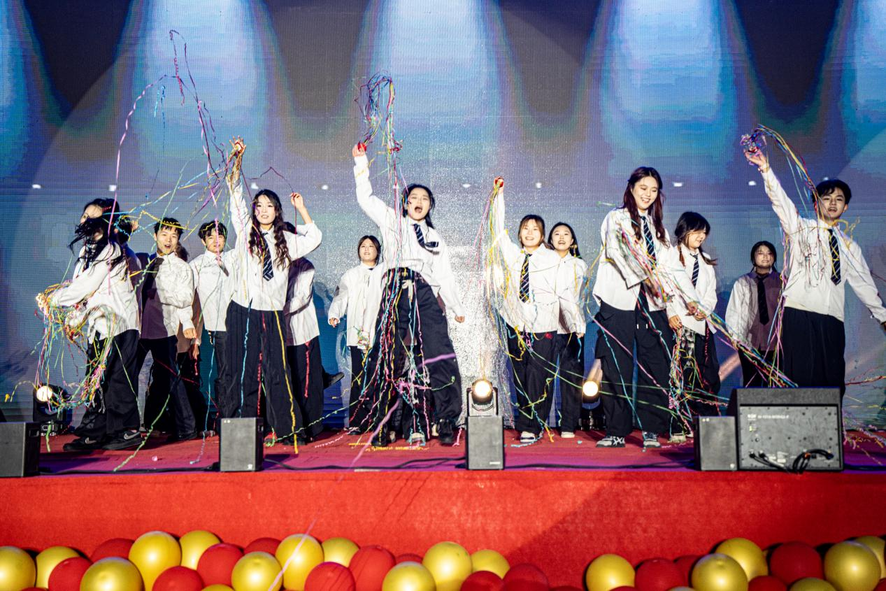 舞台上,舞步交织出斑斓色彩,合唱与民族舞共演的《铭记》饱含深情,“同行” 的青春热意在并肩起舞间愈发浓烈,青春脉搏与时代鼓点同频共振。《青春奔跑》方阵踏响奋进节奏,联欢会最终以《我爱你中国》大合唱收尾,用嘹亮歌声书写向光而行的青春誓言,彰显家国情怀。