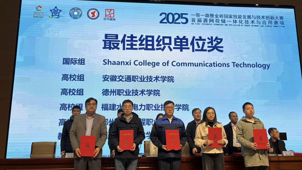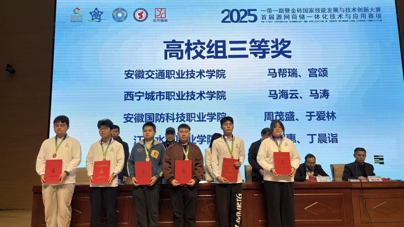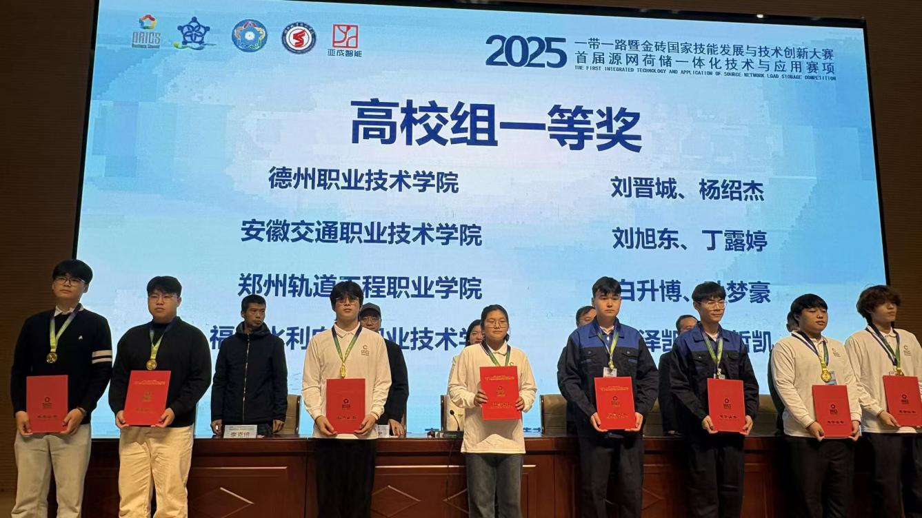 11月5日-8日,第九届“一带一路”金砖国家技能发展与技术创新大赛暨首届“源网荷储一体化技术与应用”赛项在山东德州职业技术学院隆重举行。我校轨道交通学院派出两支参赛队伍(1队参赛学生:刘旭东,丁露婷,2队参赛学生:马帮瑞,宫颂),在指导教师邓春兰、李继侠、欧志新、钟晓旭的精心带领下,凭借扎实的专业技能和出色的团队协作能力,从众多队伍中脱颖而出,分获一等奖和三等奖,为学校争得了荣誉。