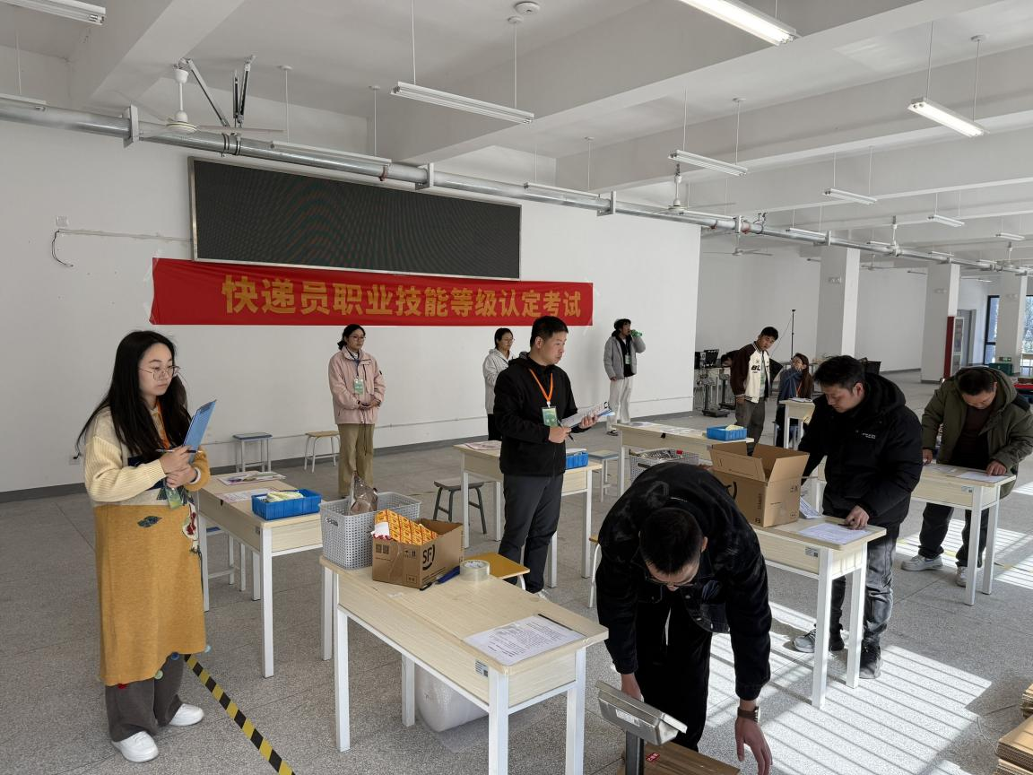 2025 年 11 月 22 日至 24 日,邮政快递职业技能等级认定快递员五级考试在我校顺利开展。此次考试吸引顺丰、极兔等五家单位的82名从业人员报名参与。
