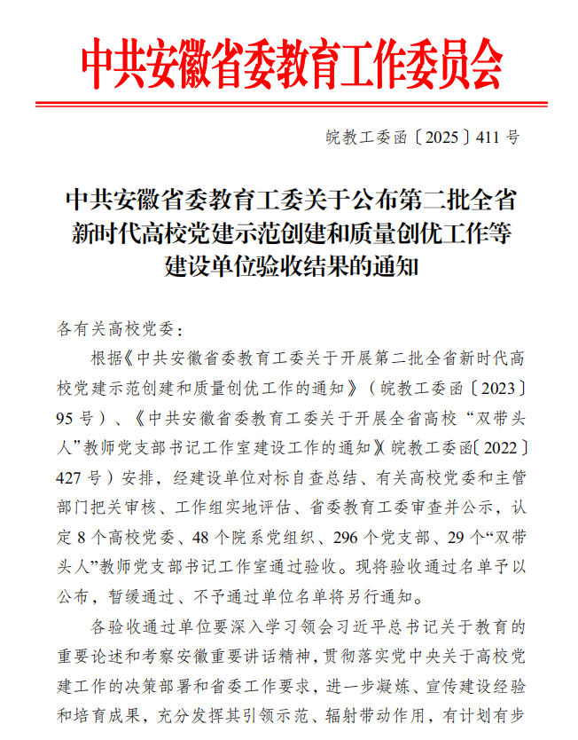 近日,省委教育工委公布了第二批全省新时代高校党建示范创建和质量创优等建设单位验收结果,我校轨道运营教研室党支部顺利通过第二批“全省高校党建工作样板支部”培育创建验收。