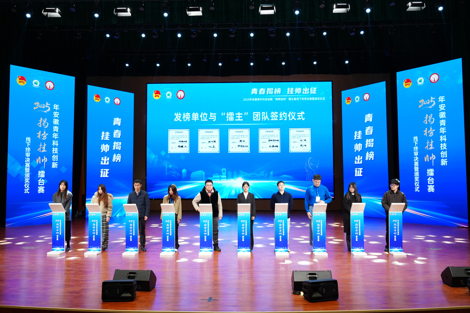 闭幕式上安徽青年科技创新“揭榜挂帅”擂台赛“擂主”团队代表进行了现场路演。