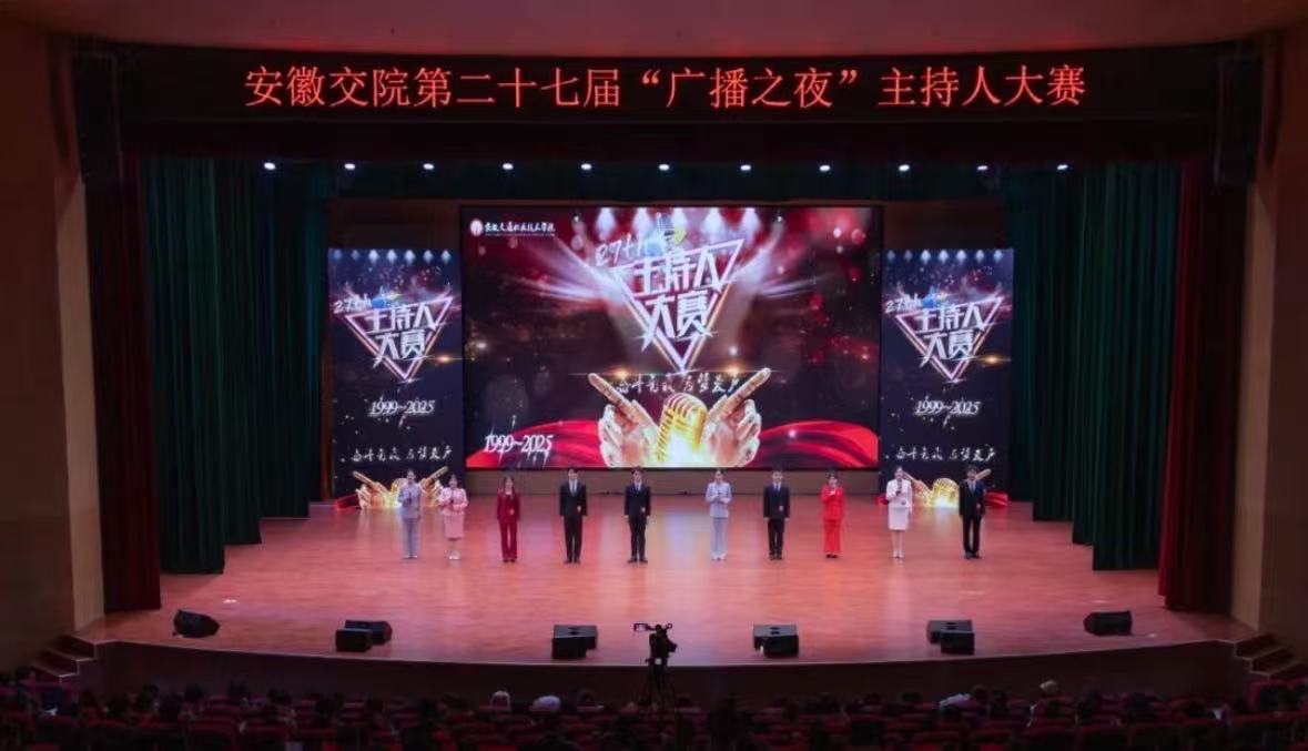 1月5日晚,由学生处、团委主办、安徽交院广播承办的第二十七届“广播之夜”主持人大赛在经世大礼堂举行。省台知名主持人应邀担任大赛评委。校党委委员、副校长梁洪波及部分二级学院党总支书记出席,近800名师生代表现场观赛。大赛通过安徽交院广播抖音、视频号等新媒体平台同步直播。