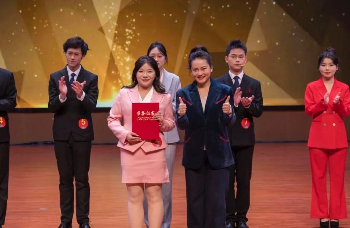 校党委委员、副校长梁洪波为大赛冠军、第27届 “闪亮星主播” 赵崇嘉颁发奖杯,同时也对广播台历年取得的成绩以及大赛举办的高标准、高规格给予肯定。