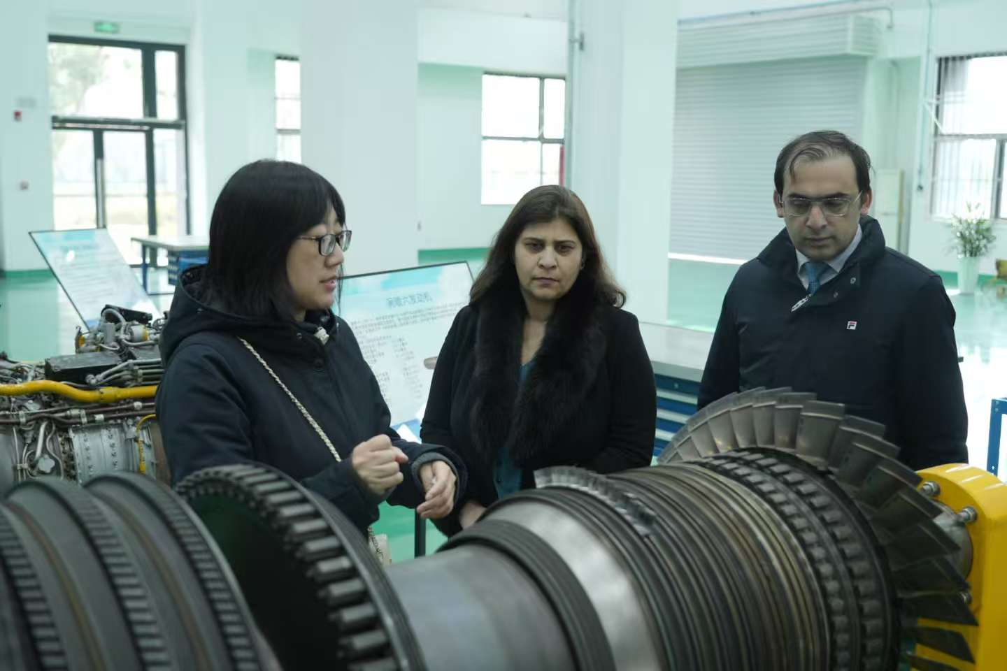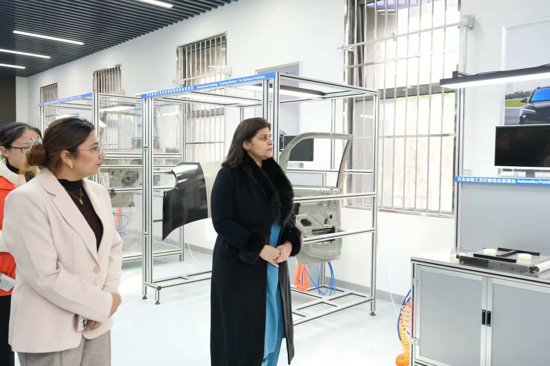 上午,在领导见面会上,巴基斯坦国家职业技术教育委员会主席古尔米娜·比拉尔率代表团出席,与安徽省教育厅副厅长刘业勋、安徽省教育发展基金会理事长王佩刚、安徽交通职业技术学院校长孙晓雷等围绕深化中巴职教合作深入交流,达成广泛共识。会后,代表团实地考察了学校新能源汽车、土木建筑、航空等实训室,详细了解学校实训条件和产教融合成果,并表达了与学校开展产教融合国际交流合作的意愿。