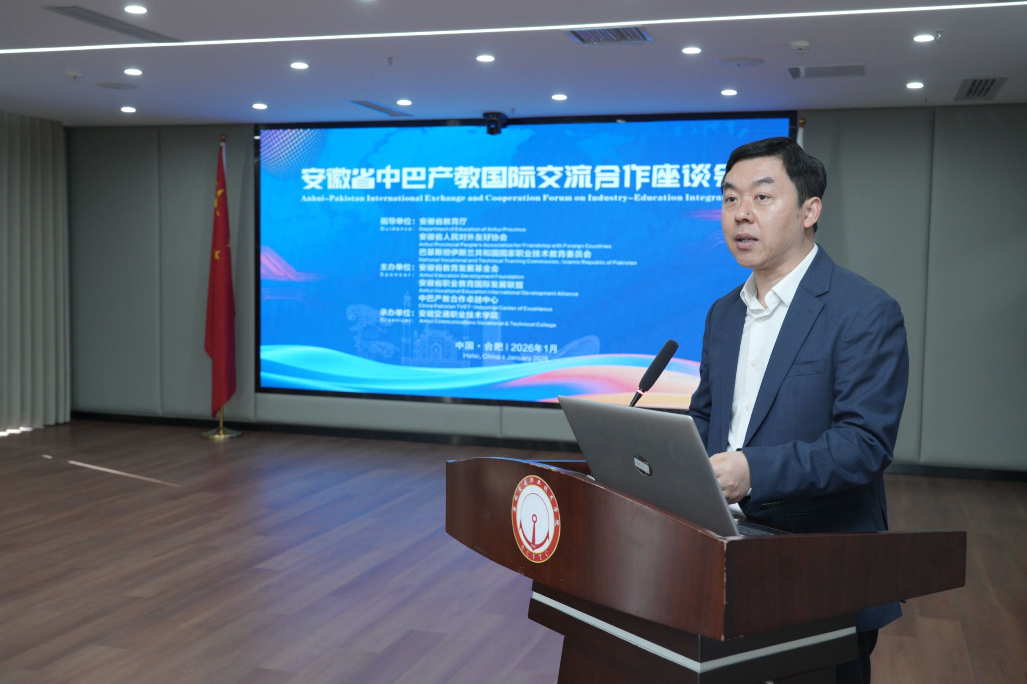 1月12日,安徽省中巴产教国际合作交流座谈会在安徽交通职业技术学院新桥校区成功举办。本次活动由安徽省教育发展基金会、安徽省职业教育国际发展联盟、中巴产教合作卓越中心联合主办,安徽交通职业技术学院承办,并得到安徽省教育厅、安徽省人民对外友好协会及巴基斯坦国家职业技术教育委员会的指导支持,旨在深化中巴职业教育与产业合作,为中巴经济走廊“2.0升级版”注入人才动力。