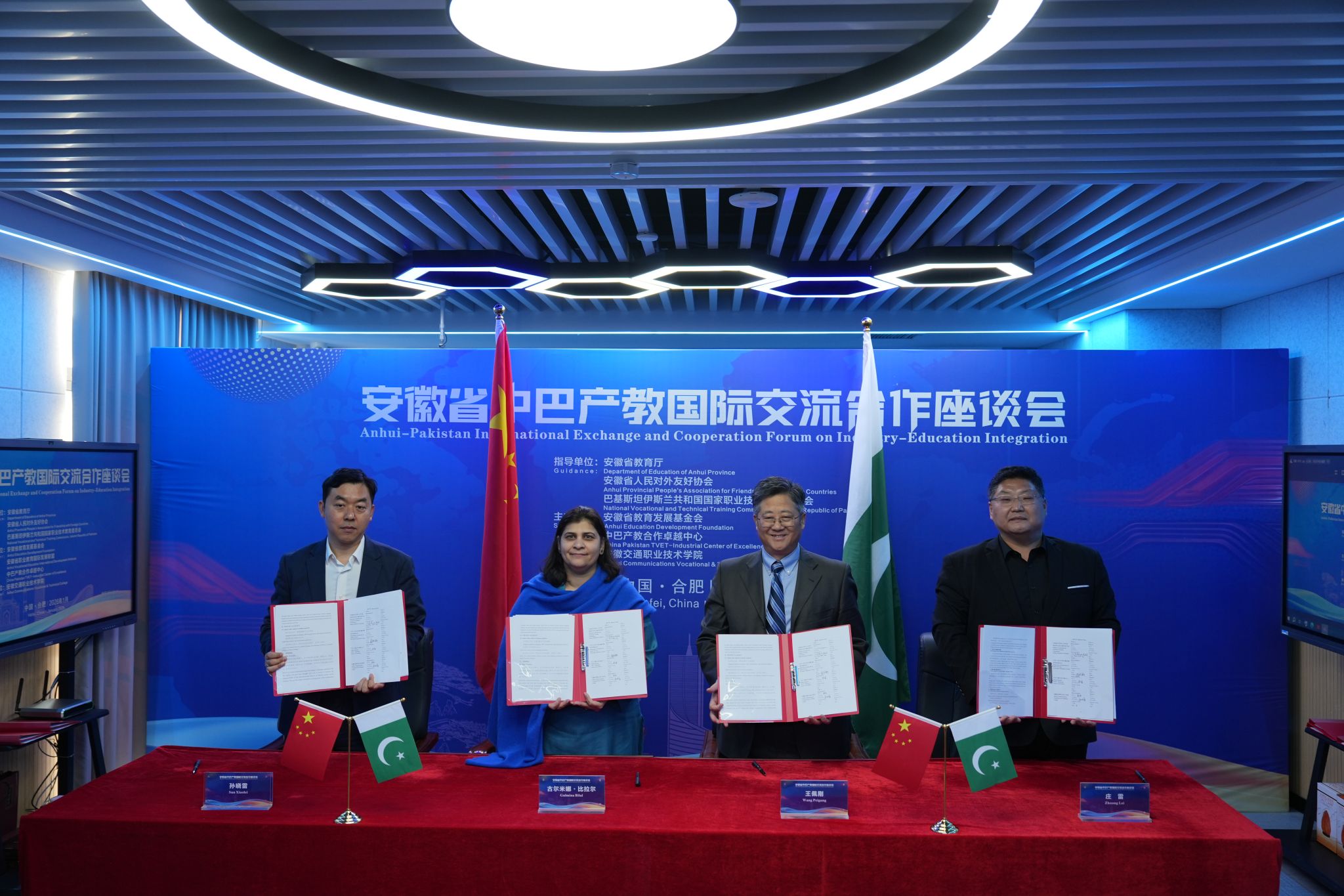 会上,巴基斯坦国家职业技术教育委员会、安徽省教育发展基金会、中巴产教合作卓越中心与省内九所院校共同签署谅解备忘录,明确合作框架与实施机制,达成多项合作意向,标志着安徽省与巴基斯坦在产教合作方面迈入机制化、常态化新阶段。