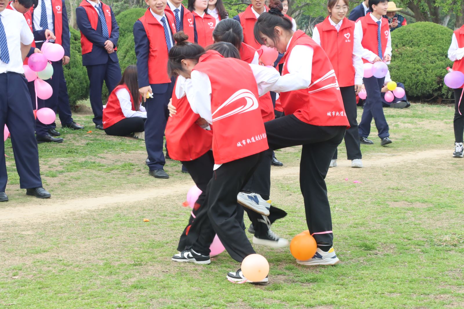 此次活动由城信系团总支负责老师徐海霞、李思琪带队。活动设置了“踩气球”“凑数字”“坐地起身”“松鼠和大树”“巨龙翻身”等游戏环节,选手们时而扭作一团,时而相互追赶,嬉笑声、紧张的叫喊声在草地上此起彼伏。