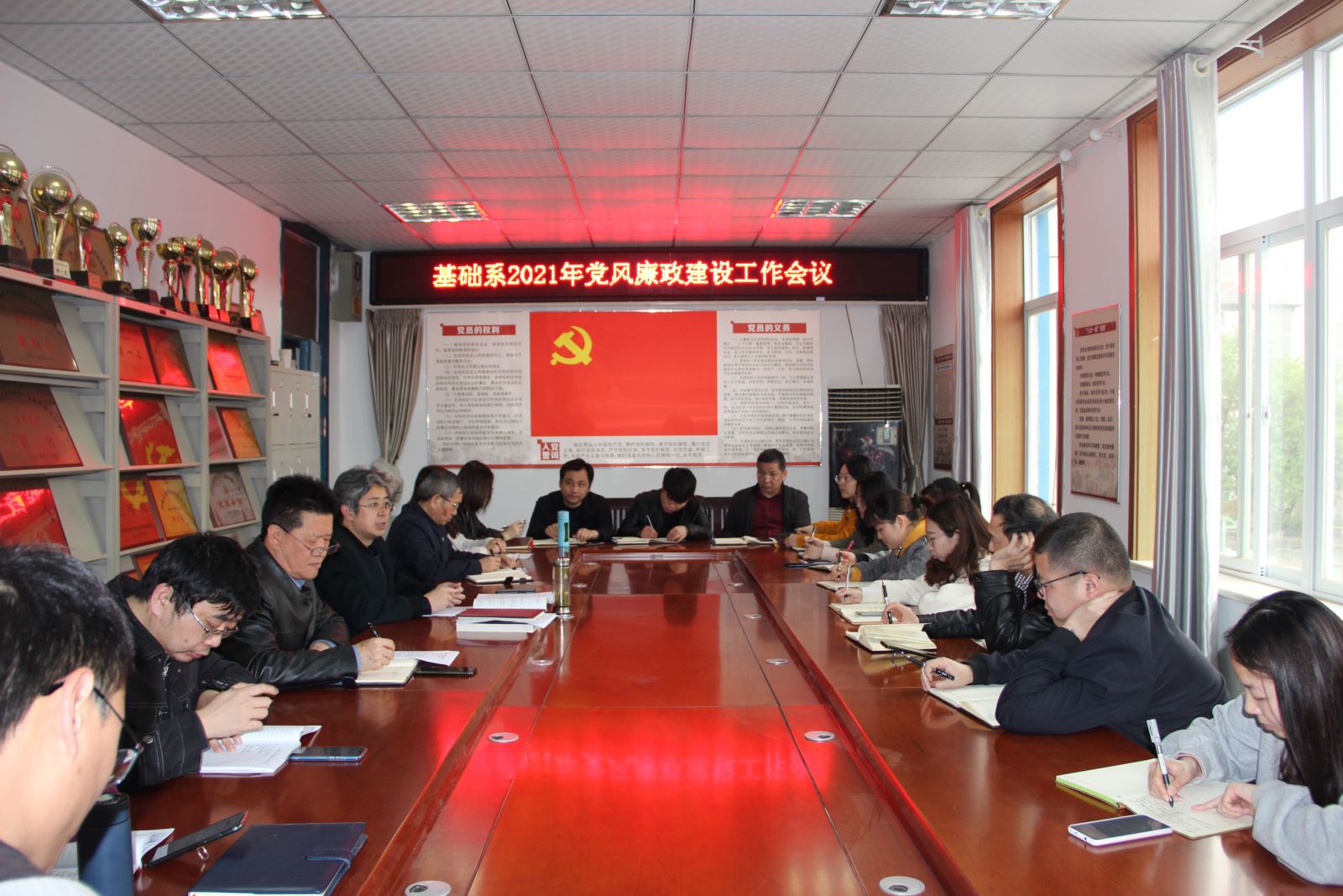 3月31日下午,基础系召开党风廉政建设工作和宣传思想工作专题会议。会议由系党总支书记邵登泰主持,全体教职工参会。