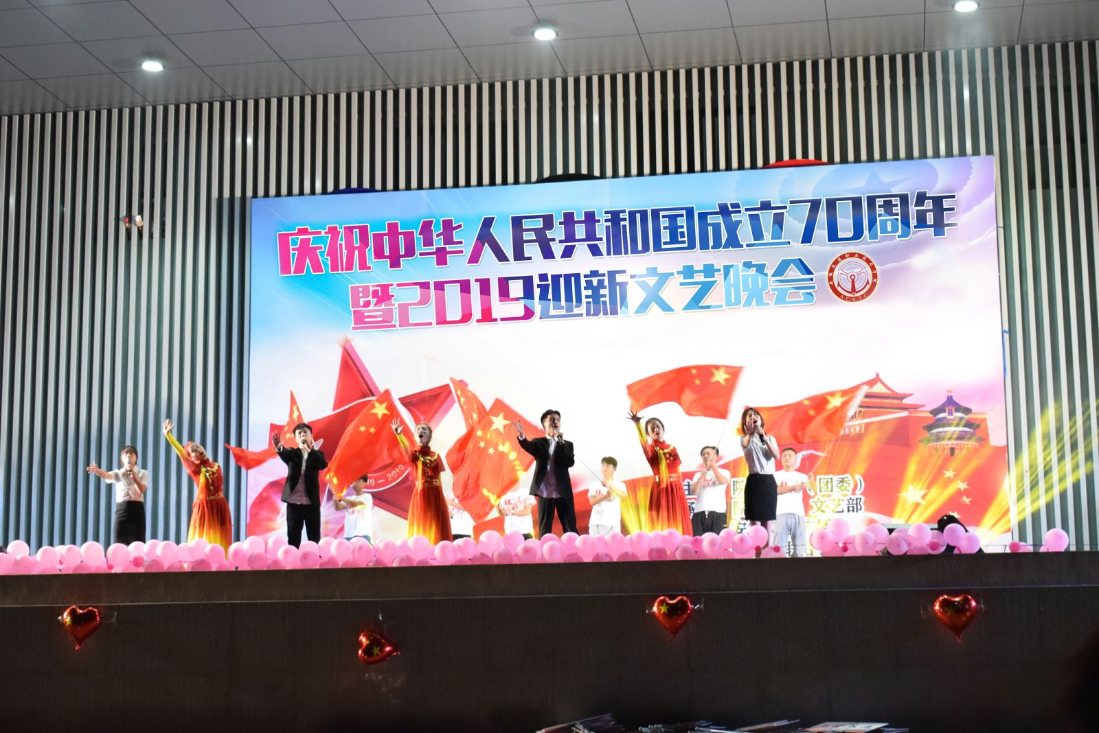 为庆祝新中国成立70周年,喜迎2019级新生,9月28日晚,由院学生处主办,院学生会文艺部、安徽交院广播站、院社团联合会及大学生艺术团承办的庆祝中华人民共和国成立70周年暨2019级迎新晚会在北区举办。3000余名师生欢聚一堂,共同观看演出。