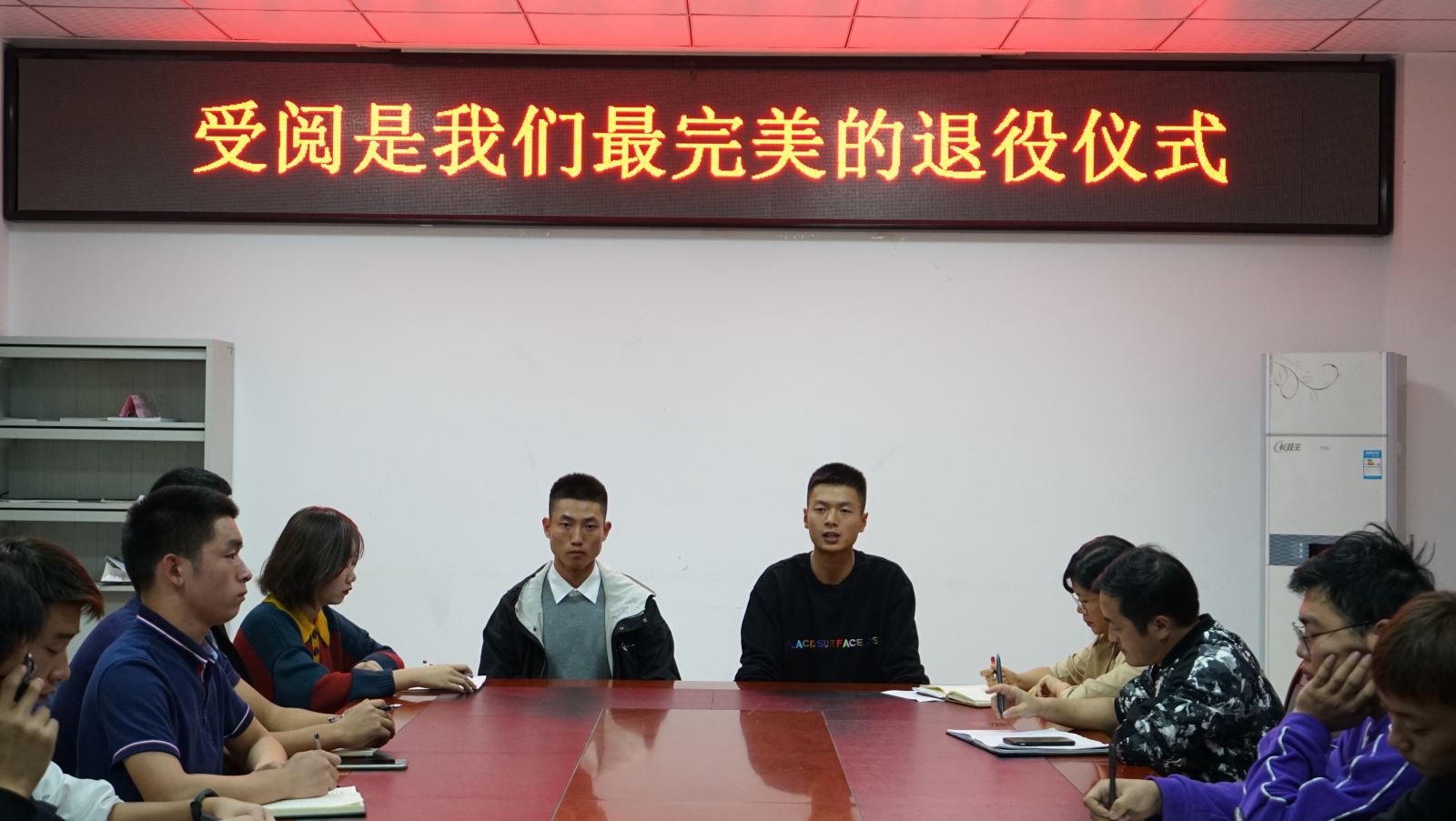 此次受阅机会来之不易。座谈会上,两位同学详细介绍了长达八个月之久训练过程的艰苦与磨砺。例如,需要通过直视太阳来锻炼坚毅的眼神,通过一个小时起步的军姿站立来训练统一的步伐......,尤其是阅兵那天,当提到经过天安门的一刹那,樊磊表示八个月的努力都值得了,向世界人民展现了中国风采。而由于礼炮手的特殊性,张凯奎需要单膝下跪执行任务,他的膝盖因为长期训练已经被磨平,但他却说,我们这一跪跪的是先烈,跪的是为了新中国成立而牺牲的千千万万的先辈,我们此刻肩负的是我们的人民,是我们的祖国!