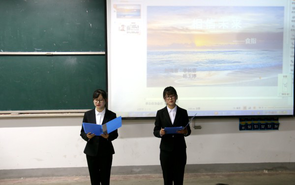 本次比赛共有十组参赛选手,在主持人宣布完比赛规则后,各组选手按抽签顺序依次上场。各组的诵读形式多样,或集体诵读,或个人独诵,并适当配以音乐和PPT,充分展现了诗文朗诵的艺术感染力和舞台表现力。17电子班张亮同学带来的《致橡树》,将自己的爱情观表达的淋漓尽致,充满着向往和憧憬。陈倪同学朗诵的《谈生命》,以“一江春水”和“一棵小树”为例,揭示了生命的生长,壮大和衰老的规律,她用充沛的感情为我们描绘了一幅生机勃勃的大自然美景,带我们走近,触摸它。选手们的深情诵读,让现场观众徜徉其中,聆听和欣赏中华文明之美。