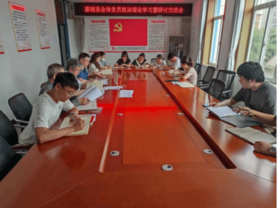 会议第一部分进行政治理论学习,会上通报了院党委扩大会暨主题教育领导小组第四次会议情况,学院主题教育5月份理论学习暨2023年第8次院党委理论学习中心组(扩大)学习会情况。学习了习近平总书记在二十届中央政治局第四次集体学习时的讲话精神、习近平回信勉励澳门科技大学师生、习近平总书记在中国-中亚峰会上的主旨讲话精神等内容。并结合基础系实际工作布置近期党建重点工作、主题教育工作和6月份主题党日活动。