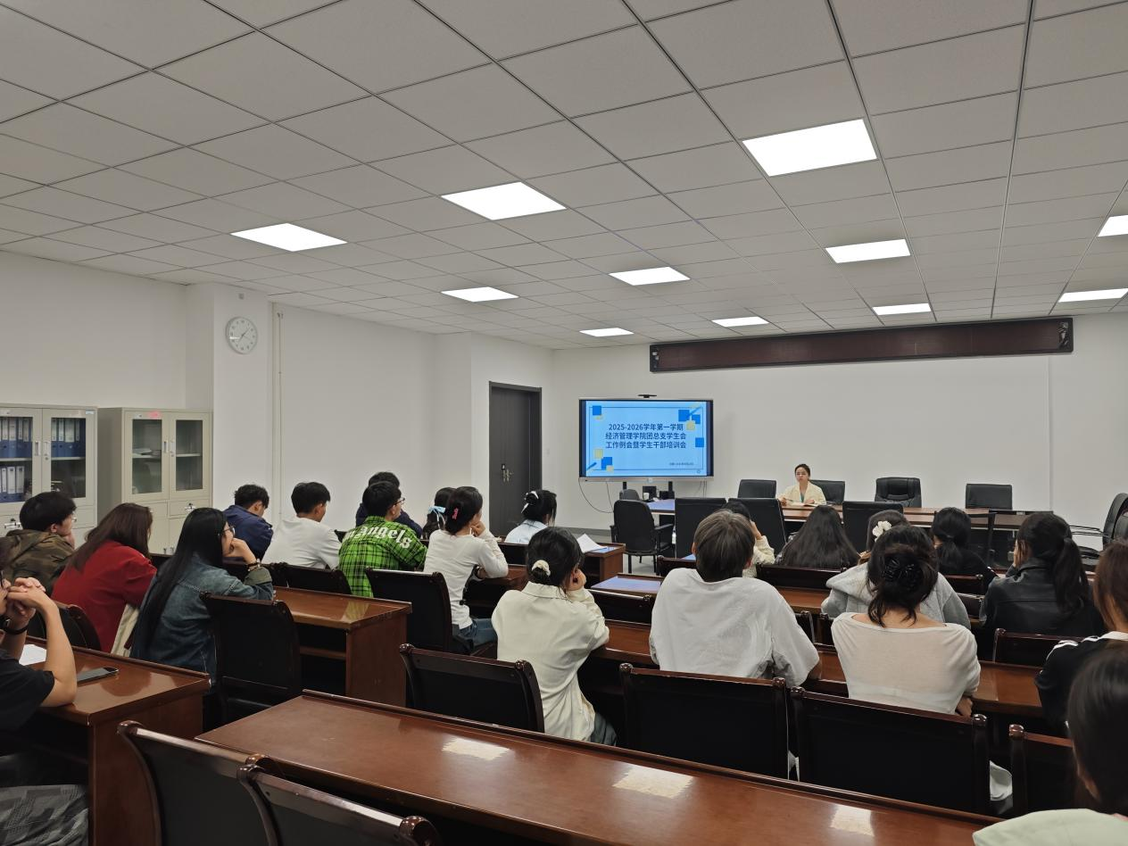 为统筹新学期团学工作部署,强化学生干部队伍建设,2025年9月23日,经济管理学院团总支学生会组织召开2025-2026学年第一学期工作例会暨学生干部培训会。会议由经济管理学院团总支书记王思敏老师主持,团总支学生会全体学生干部参会。