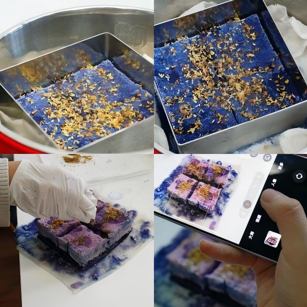 活动中采用两人协作模式,各组同学默契配合,称量、调团、塑形、装饰,制作出双色拼接、造型各异的松糕作品。大家在协作中自然交流制作心得、生活趣事乃至近期压力,欢声笑语不断,让手工创作成为心灵沟通的温暖纽带。