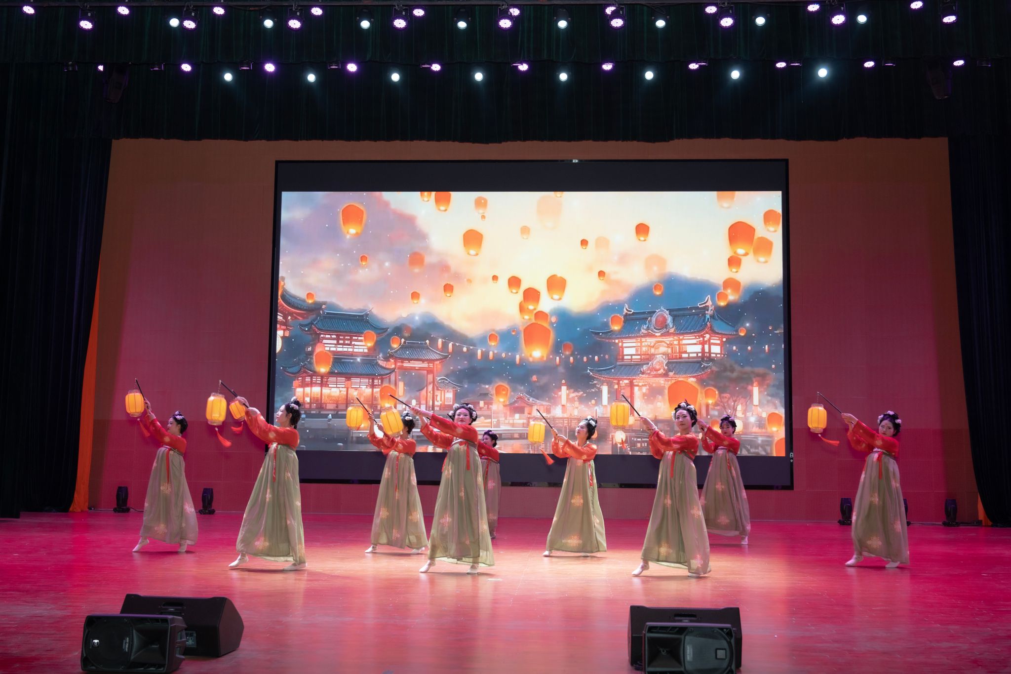 晚会在极具科技感的视觉交响中拉开序幕,激光勾勒科技星河,机械舞步激荡未来脉搏。智慧代码与光束同频,打造出人工智能与人类共创的视觉交响,瞬间点燃全场氛围。学生的礼服走秀《繁星霓裳》、双人舞、齐舞《爱乐之城》,充满力量与美感;合唱、歌曲串烧等将青春的热烈展现得淋漓尽致;10位教师的古典舞《长安三万里》以灵动身姿演绎盛唐水墨长卷;师生同台是本次晚会一大特色,由师生共同演绎的朗诵《月光下的中国》、歌曲《送你一朵小红花》等传递着师生间的陪伴与守护、浓浓情谊在会场流淌。教师独唱《再回首》以深情旋律带领观众走进回忆走廊,晚会在歌曲《相亲相爱》的旋律中画上圆满句号。
