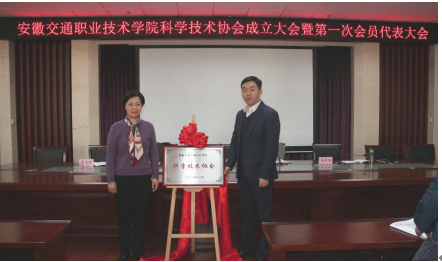 高少英宣读《安徽省科学技术协会关于安徽交通职业技术学院成立科学技术协会的批复》。陈佩环和孙晓雷共同为“安徽交通职业技术学院科学技术协会”揭牌。