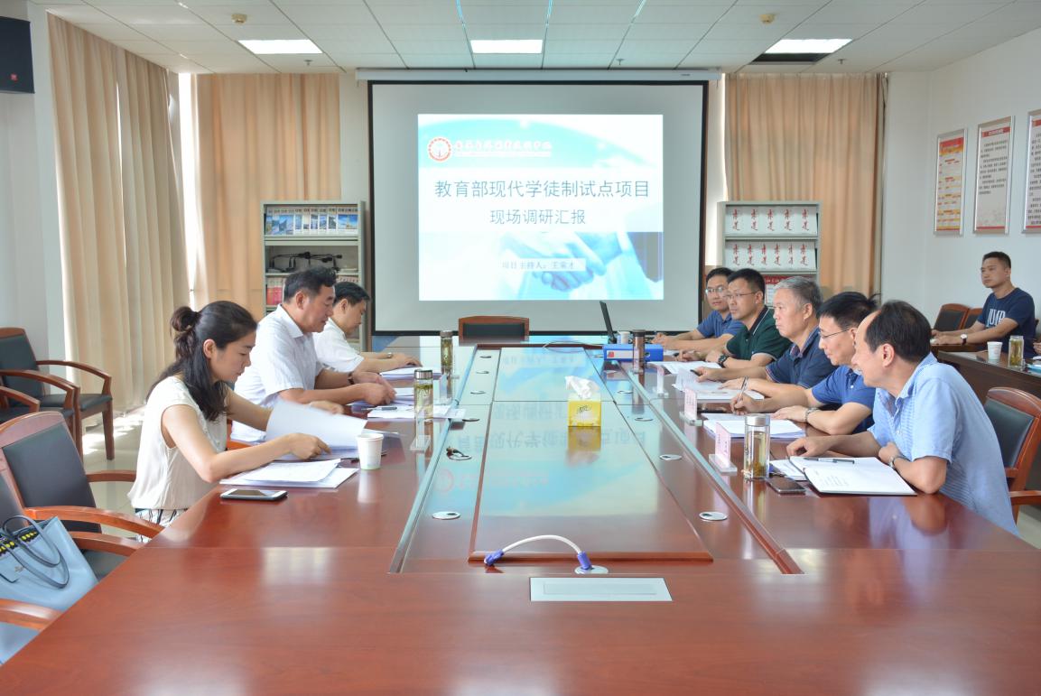 7月23日下午,受教育部委托,省教育厅专家组合肥职业技术学院邵一江院长等一行3人对我院国家级现代学徒制试点项目开展现场调研工作。学院张国栋院长、王丰胜副院长、教务处吴玉处长、汤峰副处长及项目团队成员参加了此次调研汇报工作。