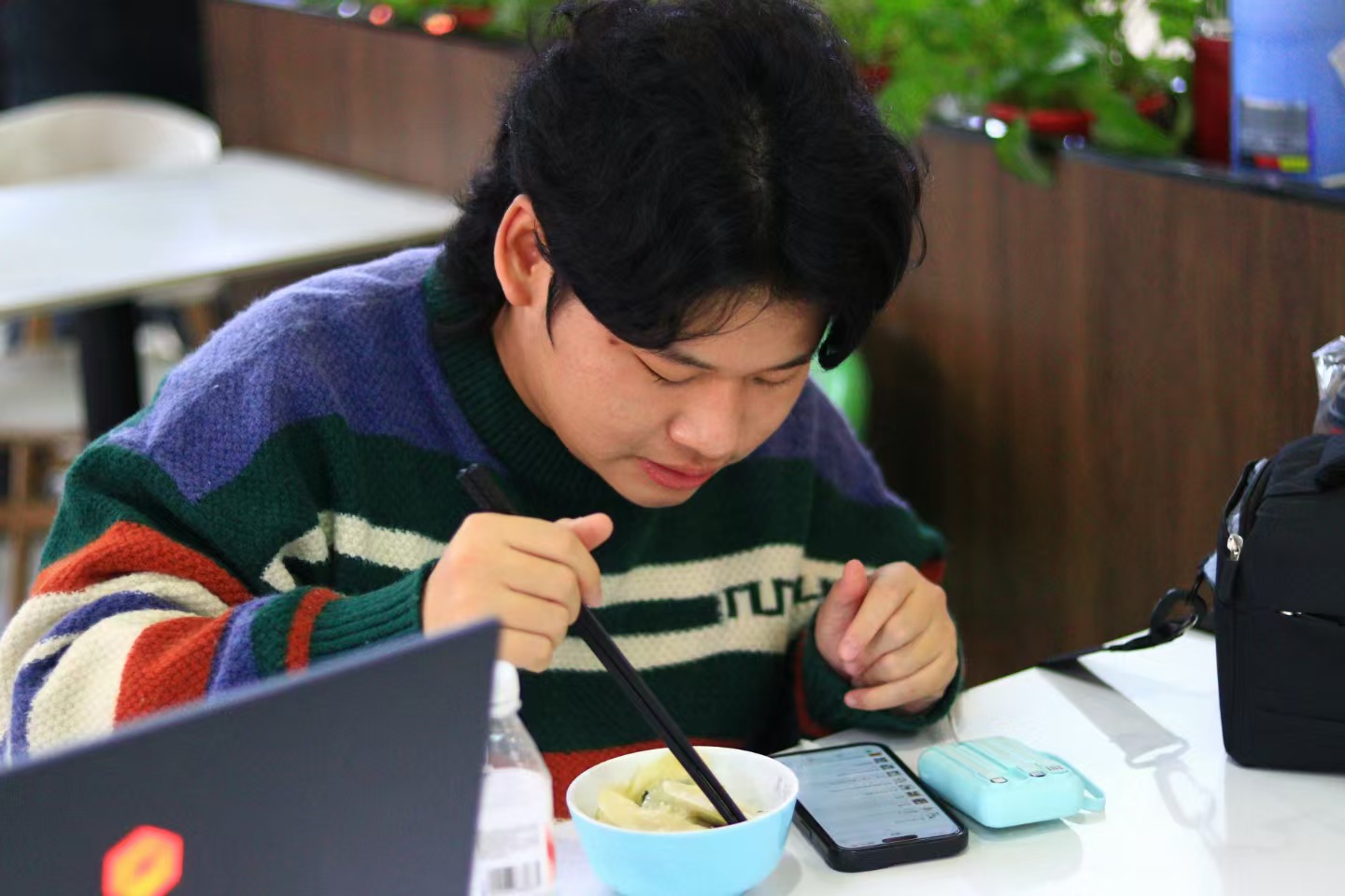 紧张刺激的吃饺子比赛将现场气氛推向高潮,参赛选手们争分夺秒又不失文明风采,台下观众的加油呐喊声此起彼伏,既展现了青年学子的活力朝气,也让集体荣誉感在互动中悄然升温。活动期间,学院文艺骨干带来的歌曲串烧更将艺术之美与节日氛围完美融合,为活动增添浓厚文化气息。