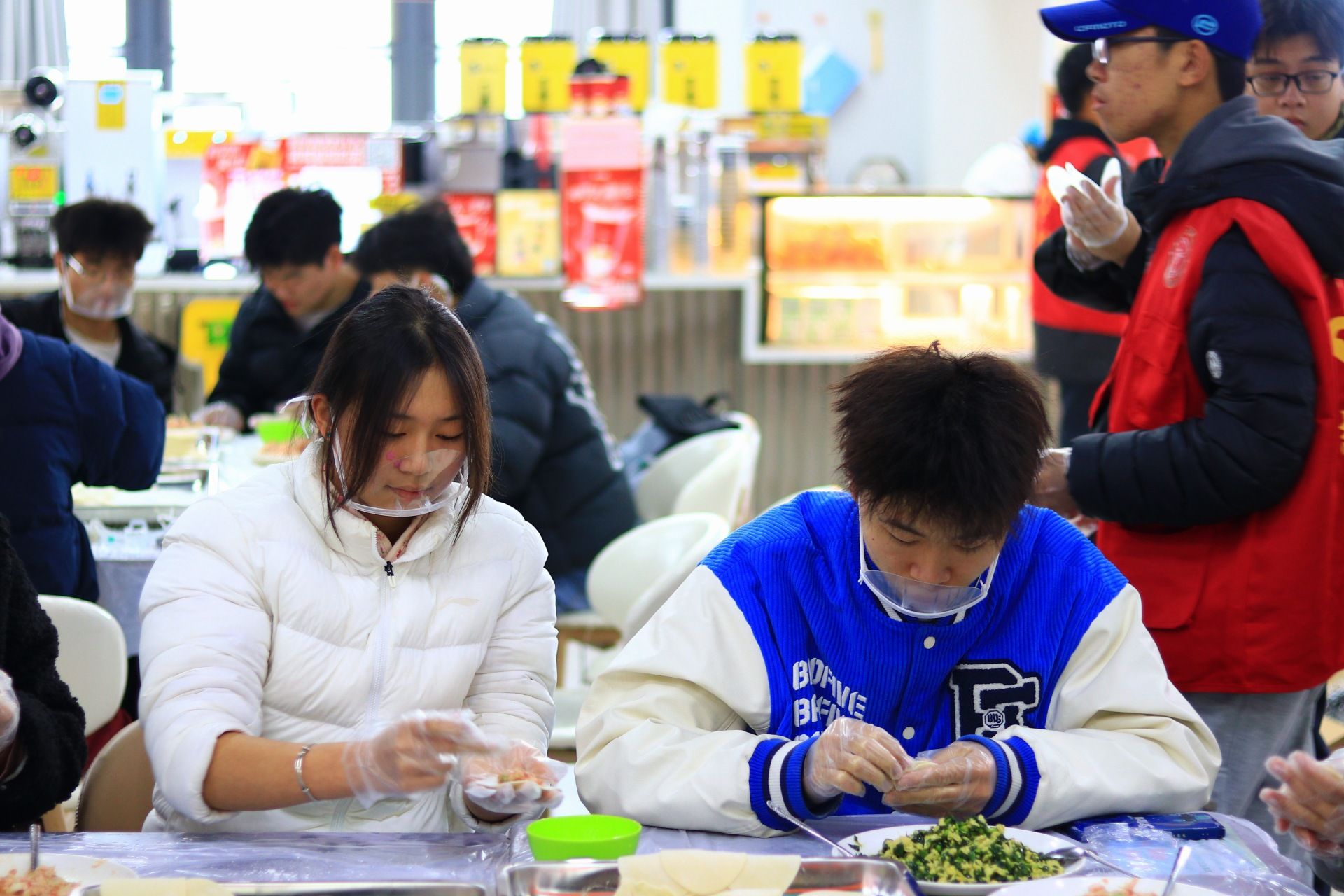 活动现场暖意融融,处处洋溢着热闹祥和的氛围。作为活动核心环节的包饺子比赛率先拉开序幕,同学们迅速组队、分工协作,揉面、擀皮、包馅、捏褶一气呵成。擀皮时的默契配合、捏褶时的细心专注、创意造型时的欢声笑语,不仅让同学们快速掌握了包饺子的实用技能,更深刻体会到“众人拾柴火焰高”的团队力量,真切感受到劳动过程中的专注与快乐。