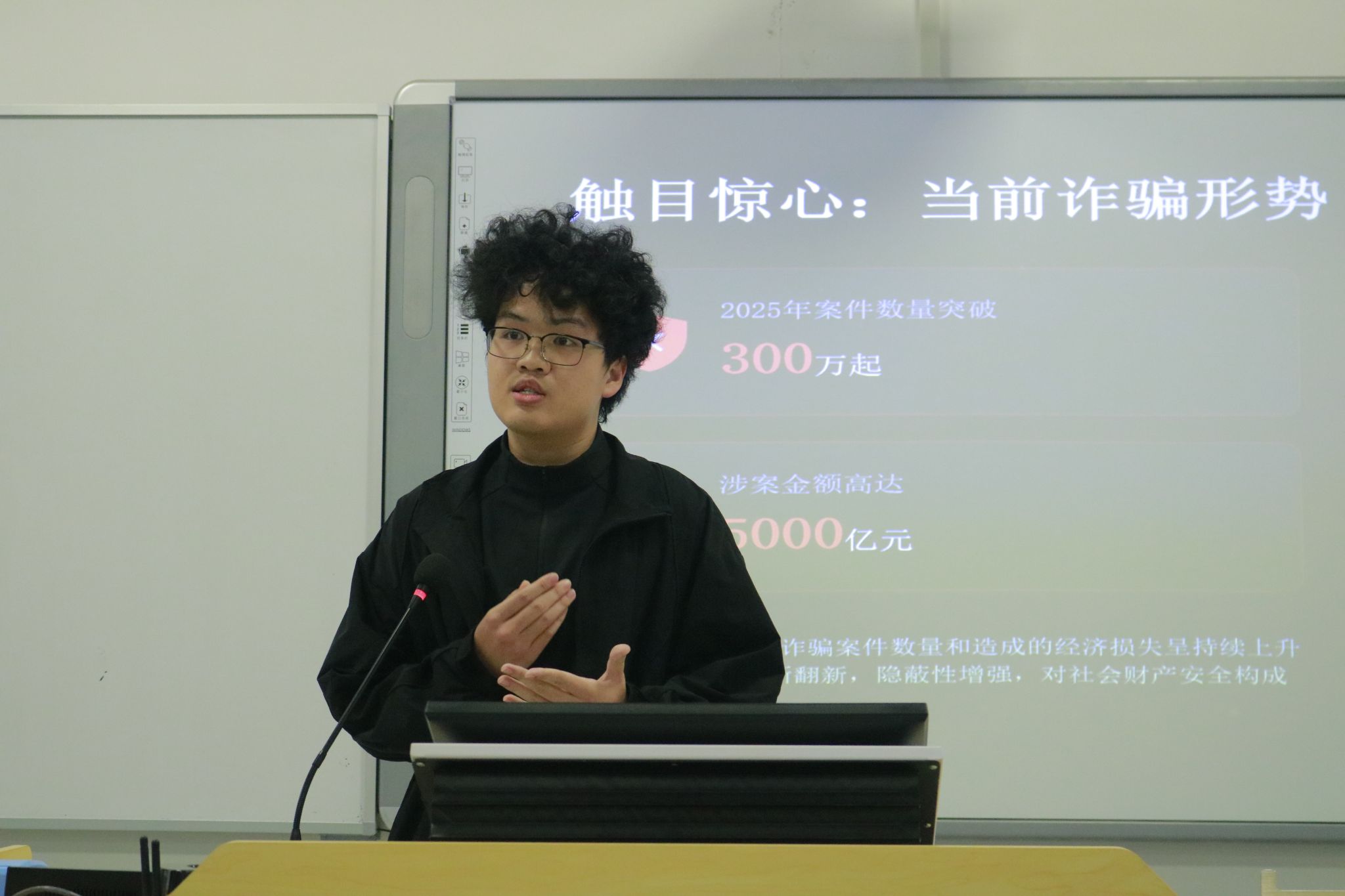 比赛现场,参赛选手们紧扣主题,结合身边真实案例、常见电信诈骗套路,围绕刷单返利、虚假网贷、冒充客服等校园高发诈骗类型,用真挚的情感、生动的语言分享反诈知识与防范心得。选手们或剖析诈骗危害,或讲解防范技巧,以铿锵有力的演讲呼吁同学们提高警惕、远离诈骗,精彩的表现赢得现场阵阵掌声。