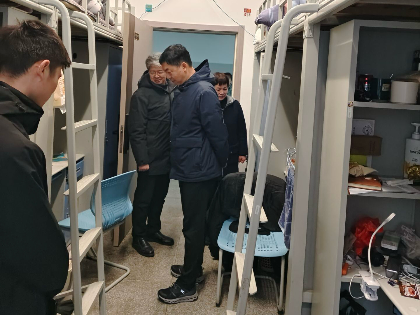 走访过程中,校领导一行先后走进不同年级学生宿舍,与同学们面对面亲切交流问问大家返校路上顺不顺利、假期过得怎么样,以及新学期有什么打算,同时也关心宿舍住得是否舒心、有没有需要解决的生活问题。亲切的交流没有距离感,让同学们感受到了学校的关心。