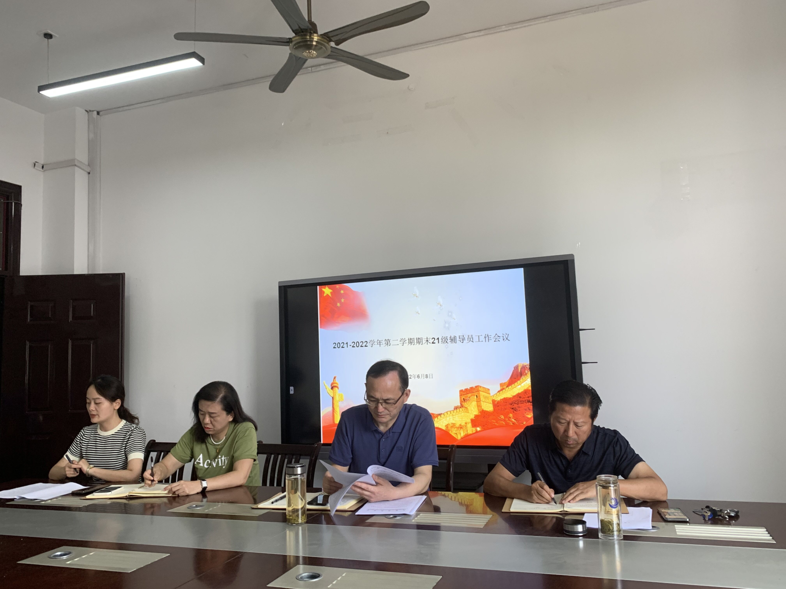 6月8日上午,土木工程系召开2021-2022学年第二学期期末21级辅导员工作会议。系领导邹建华、朱蓉、王守胜出席,21级辅导员辅导员参加会议,会议由系主任辅导员蒋凤娇主持召开。