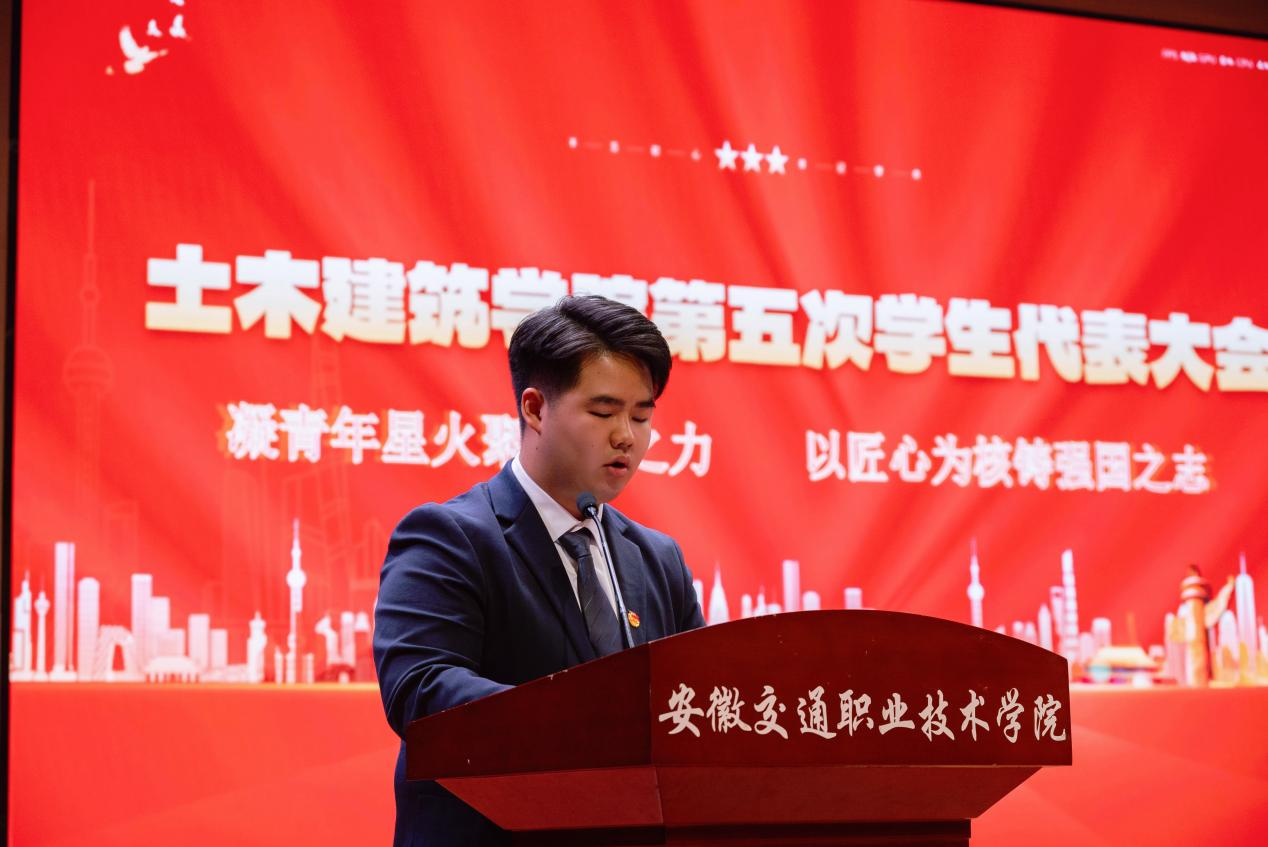 随后,邵登泰代表学院党总支对大会召开表示热烈祝贺,充分肯定了过去一年团学组织在思想引领、权益维护、校园文化建设等方面取得的扎实成绩。结合土木建筑专业特色与时代使命,他向全院青年提出三点希望:一是筑牢信仰之基,在世界百年未有之大变局中站稳政治立场,深入学习习近平新时代中国特色社会主义思想,做党的创新理论的坚定信仰者;二是勇担强国重任,将“成才梦”融入“强国梦”,以匠心钻研专业知识,争当交通建筑领域栋梁之材;三是锻造过硬作风,学生骨干要带头践行“勤奋、通达、敬业、乐群”校训,推动学生会深化改革,凝聚同学共同进步。