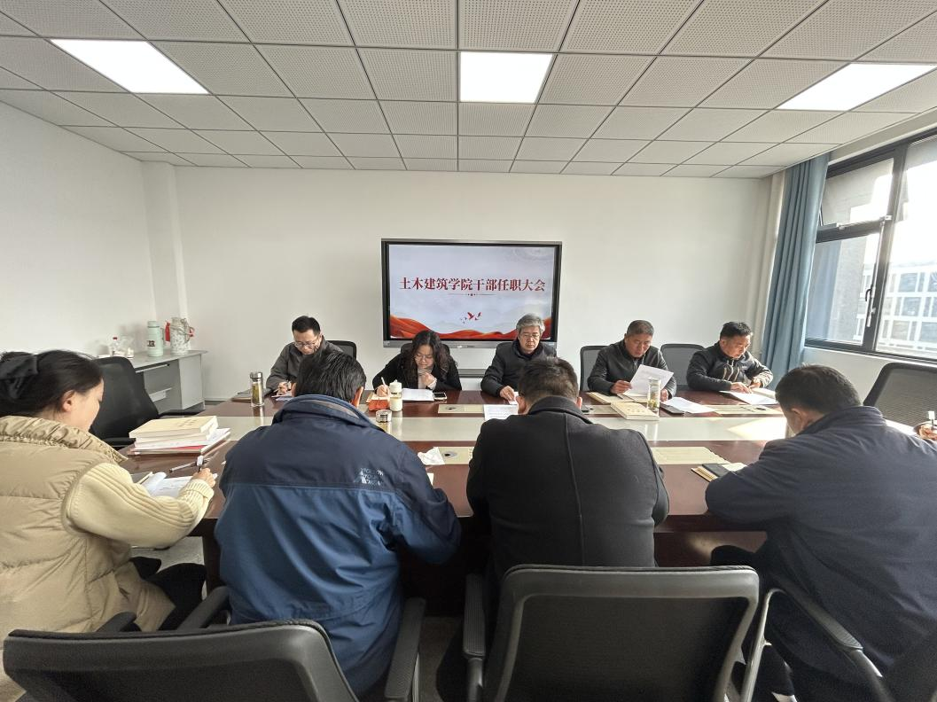 12月10日,土木建筑学院在天工楼A411会议室召开干部任职大会,各党支部书记、副科及以上干部参会,党总支书记邵登泰主持会议。