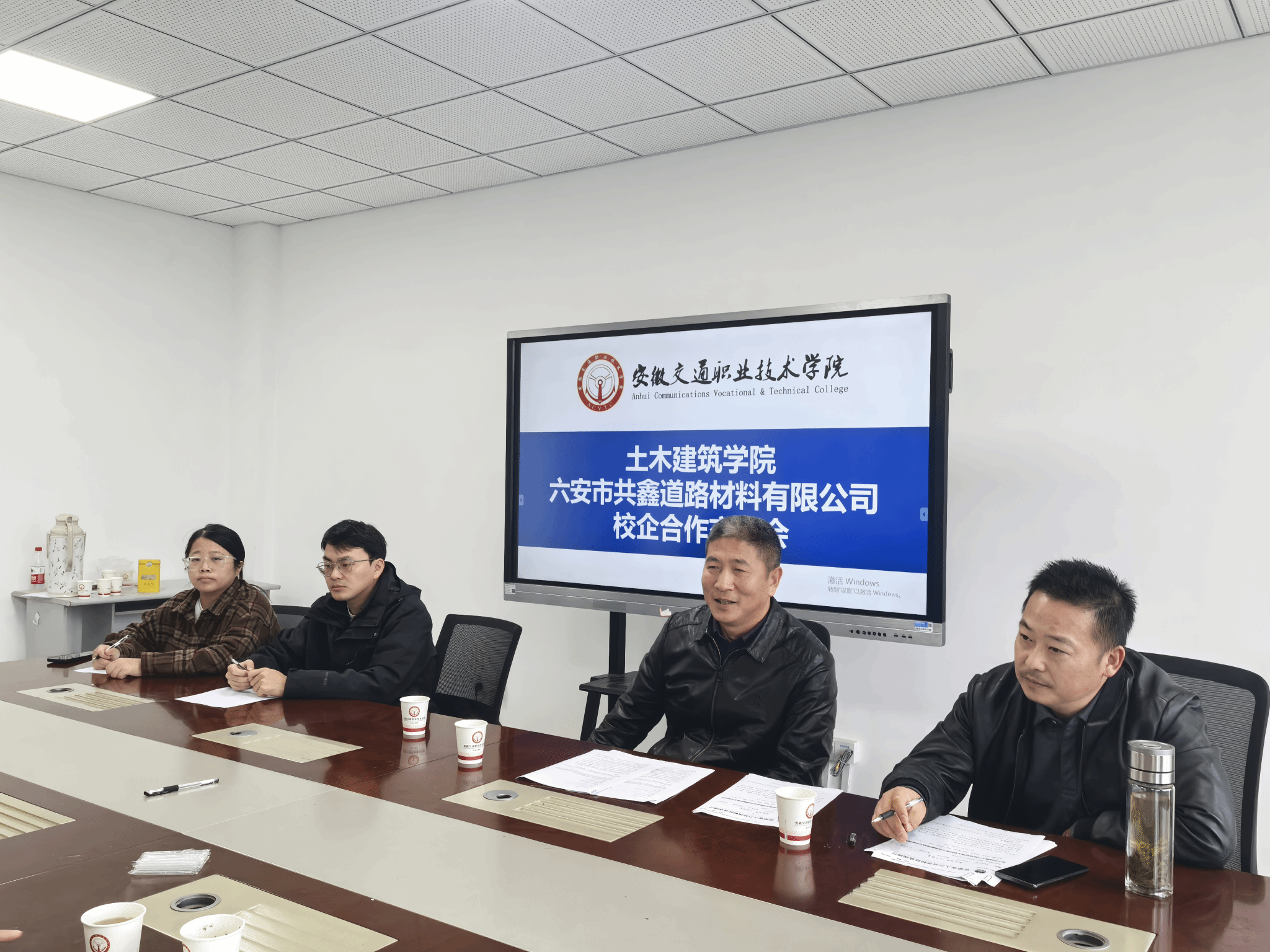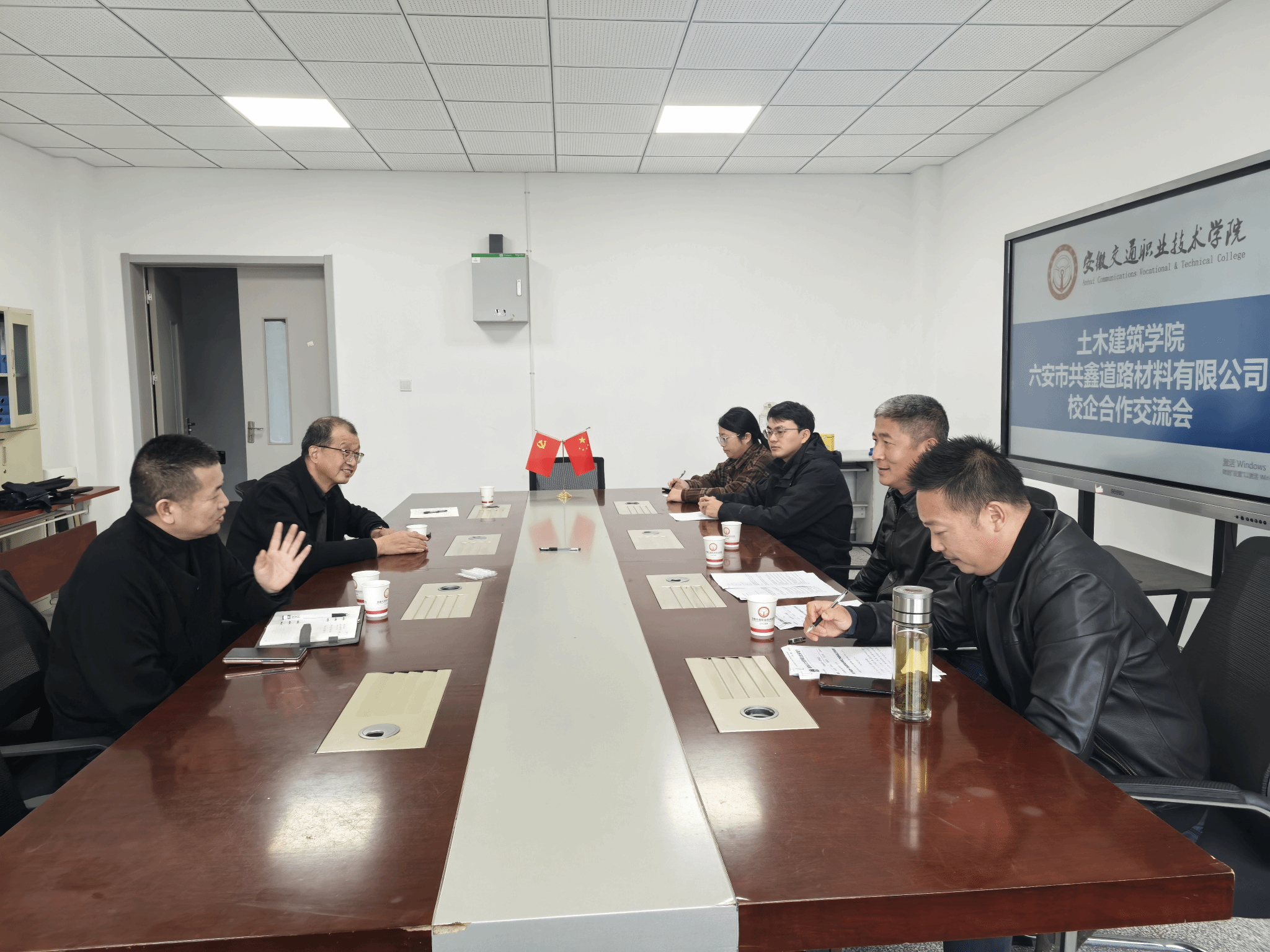 11月7日上午,土木建筑学院与六安市共鑫道路材料有限公司召开校企合作交流会,围绕“共建博士后工作站”展开深入研讨。共鑫道路材料有限公司总经理谭宜飞、学院院长王东、副院长纪凯等人出席会议。会议由王东主持。
