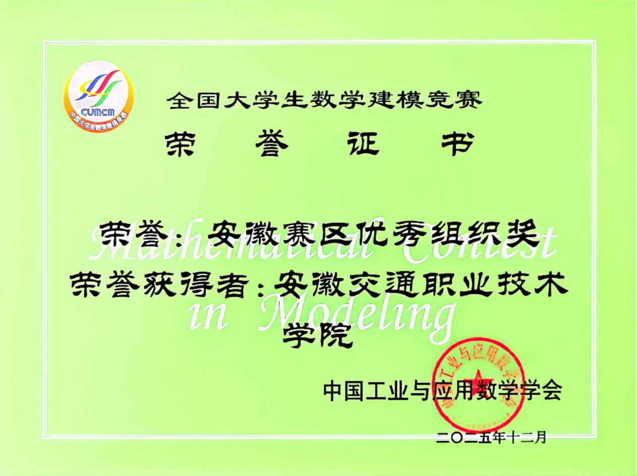 近日,2025年全国大学生数学建模竞赛获奖证书正式发放。我校土木建筑学院由23路桥7班叶波、23路桥5班胡守成、24路桥2班张健明三位同学组成的参赛团队,在李洪岩老师的指导下,荣获高职高专组全国一等奖,实现了我校在该项高水平赛事中的历史性突破。同时,学校荣获“安徽赛区优秀组织奖”,李洪岩老师获评“安徽赛区优秀指导教师”,取得竞赛成绩的全面丰收。