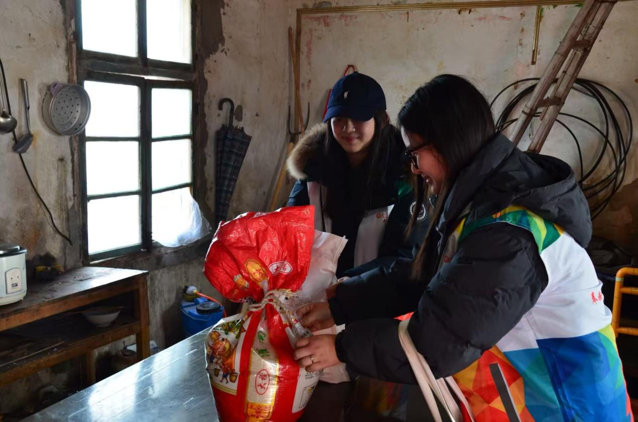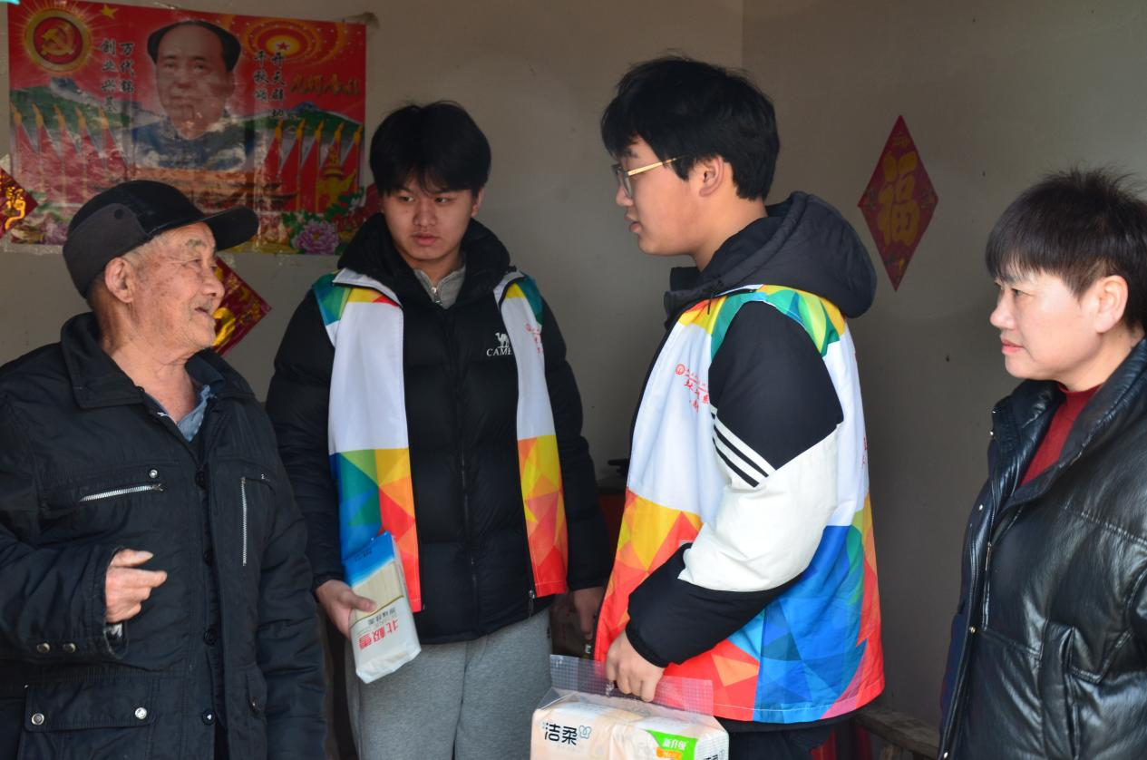 活动当天,师生们在社区工作人员的引导下,分组前往五保户老人家中。每到一户,志愿者们都为老人送上米面粮油等生活用品,和老人坐在一起聊天,仔细询问老人的身体状况、生活起居和实际需求,倾听老人的想法,用亲切的话语安慰老人,让独居老人感受到关怀与温暖。