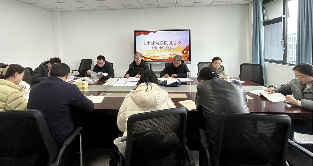 3月17日,土木建筑学院在A411会议室召开党总支(扩大)会议,学院党总支成员、各党支部书记、副科及以上干部和党支部记录员参会,党总支书记邵登泰主持会议。