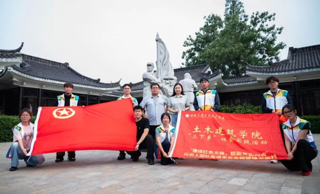 “民族要复兴,乡村必振兴;乡村要振兴,文化必先行。”在中国人民抗日战争暨世界反法西斯战争胜利80周年之际,为深入学习贯彻党的二十大精神和习近平总书记关于“用好红色资源、讲好红色故事、搞好红色教育”的重要指示,安徽交通职业技术学院土木建筑学院“兴农人”社会实践团队在学院团组织负责人武庆媛和检测与养护教研室党支部委员武余波的带领下,于7月15至16日赴滁州天长市铜城镇国家历史文化名村龙岗,开展以“赓续红色文脉,赋能芡实兴农”为主题的暑期“三下乡”实践活动。团队紧扣“红色文化”与“特色产业”双主线,通过对话抗战老兵、探访红色旧址、深耕芡实产业,在红土地上书写青春答卷,让红色精神与振兴实践同频共振。