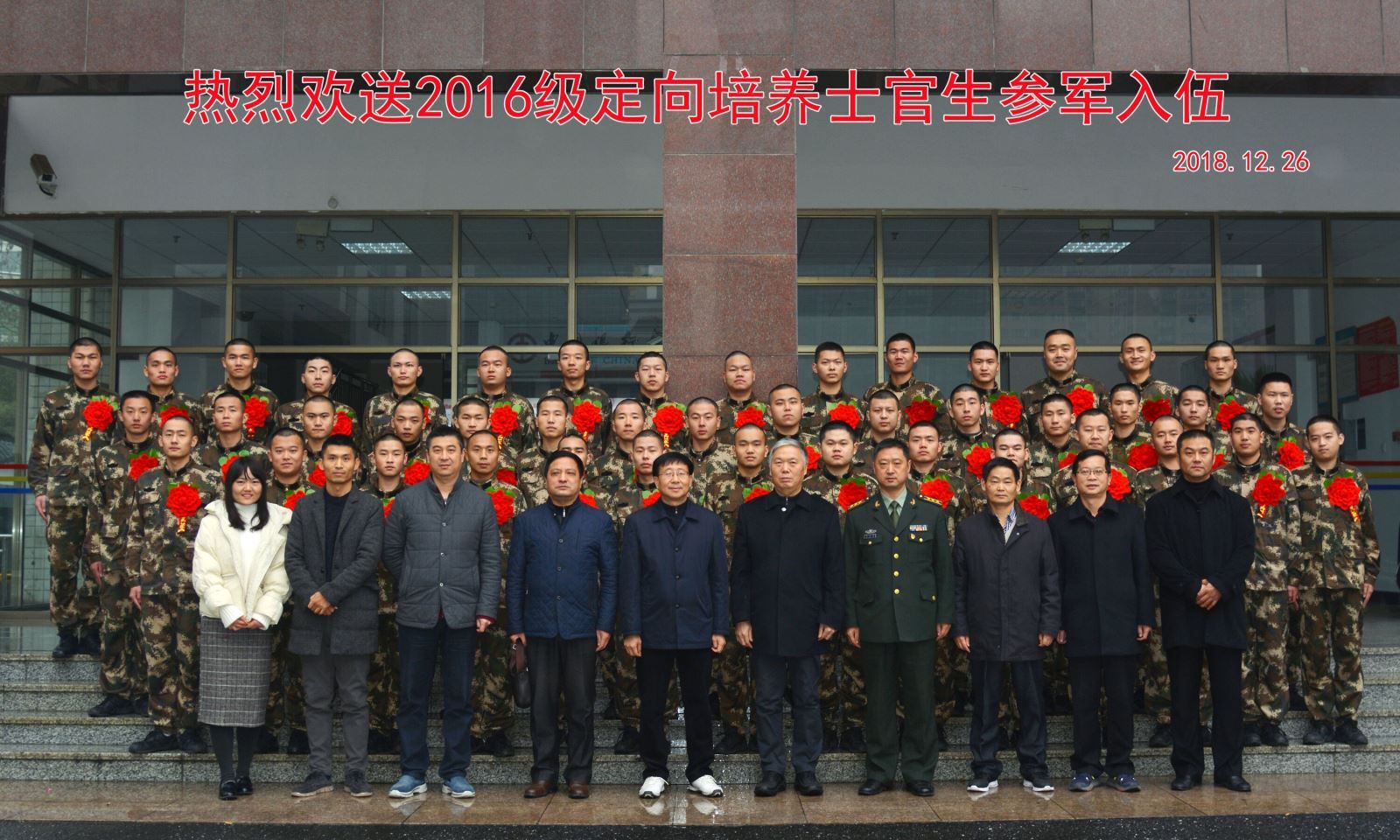 12月26日下午,我院在信息楼九楼会议室隆重举行2016级定向培养士官生入伍欢送会。包河区人武部部长朱宏刚受邀参加欢送会。院长张国栋,学生处、汽车与机械工程系相关负责人及辅导员一起为入伍士官生送行。