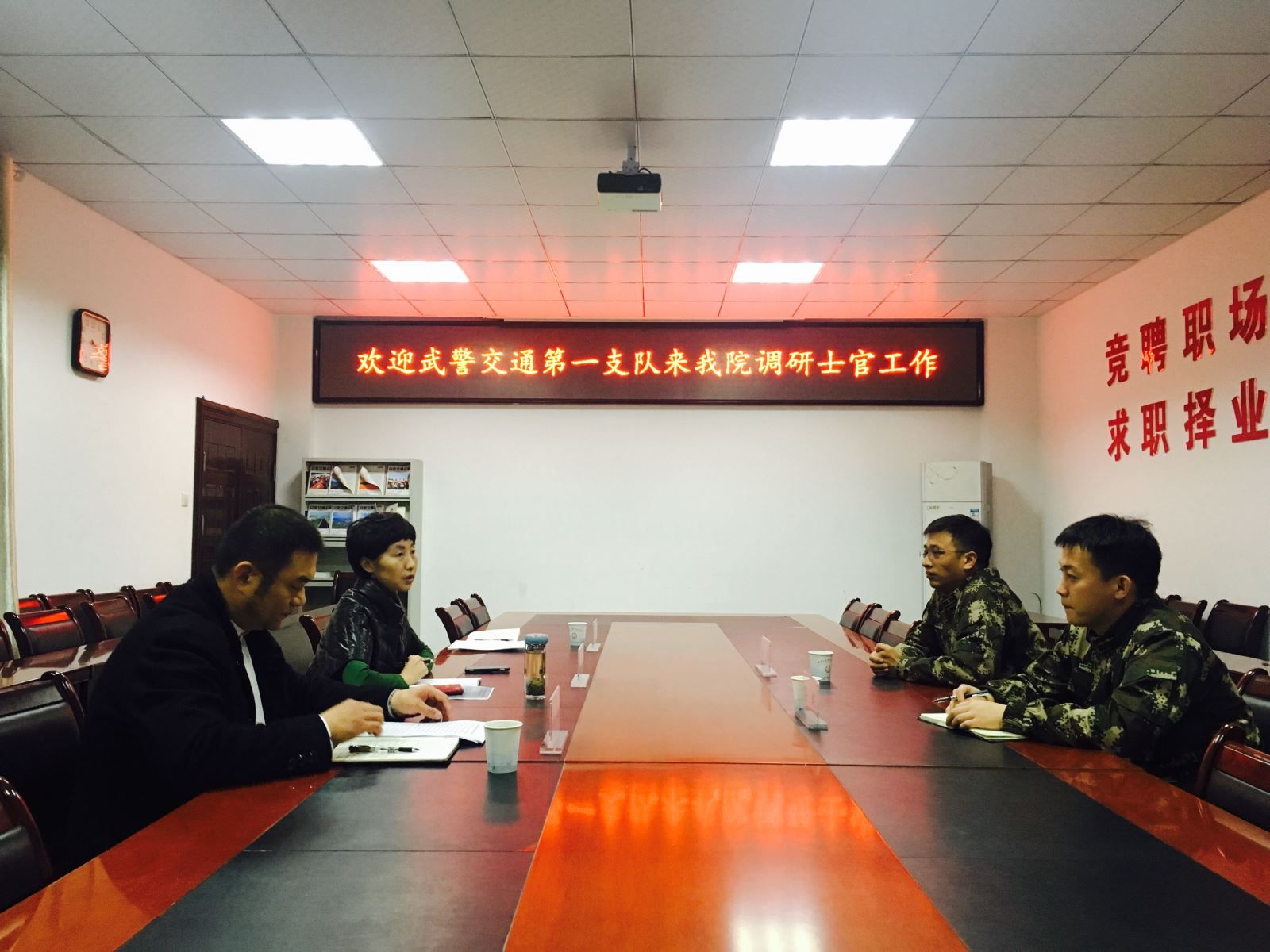 12月3日下午,武警交通第一支队人力资源科科长周毅一行到我院调研定向培养直招士官工作,学生处处长喻谨、副处长徐刚参加了调研。
