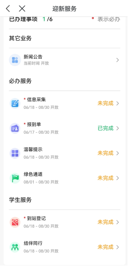 进入迎新界面完成迎新报到流程。带*的事项是要求必须完成的~