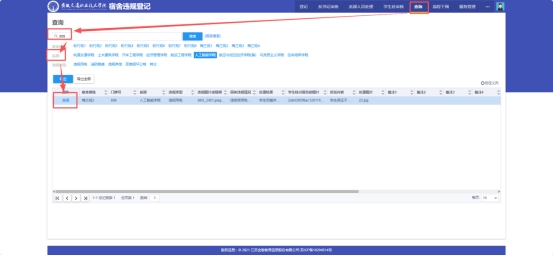 4.点击【查看】页面,根据系部分类进行筛选,以及输入门牌号精准搜索,点击【查看】按钮即可查看流程的详细流转信息